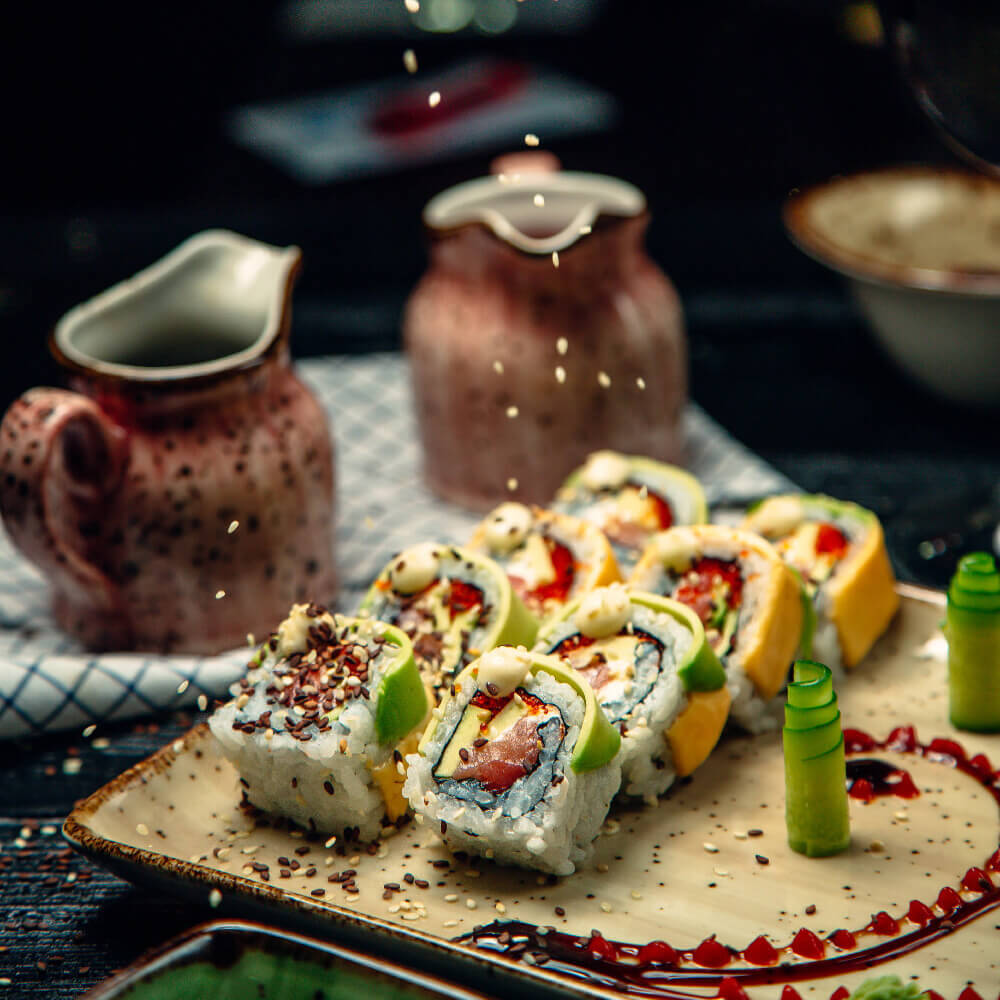سوشی شما آمادهی سرو است. میتوانید از سسهای ایتالیایی، هالو هات و خردل باربیکیو فیلفیل برای سرو آن استفاده کنید.