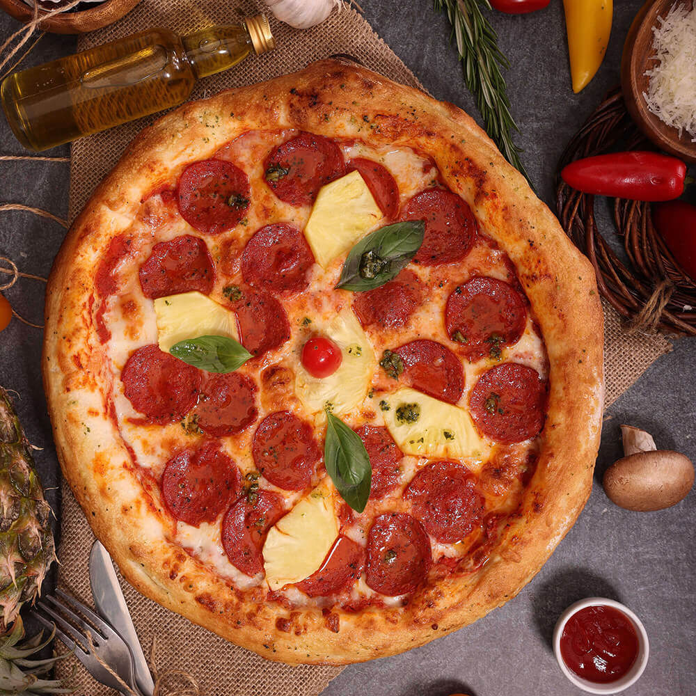 پس از پخته شدن پیتزا، میتوانید با استفاده از ریحان و آویشن آن را تزئین کنید. میتوانید برای سرو این غذا از ترکیش بیبر، هاتبیبر و مایوکادو فیلفیل استفاده کنید.